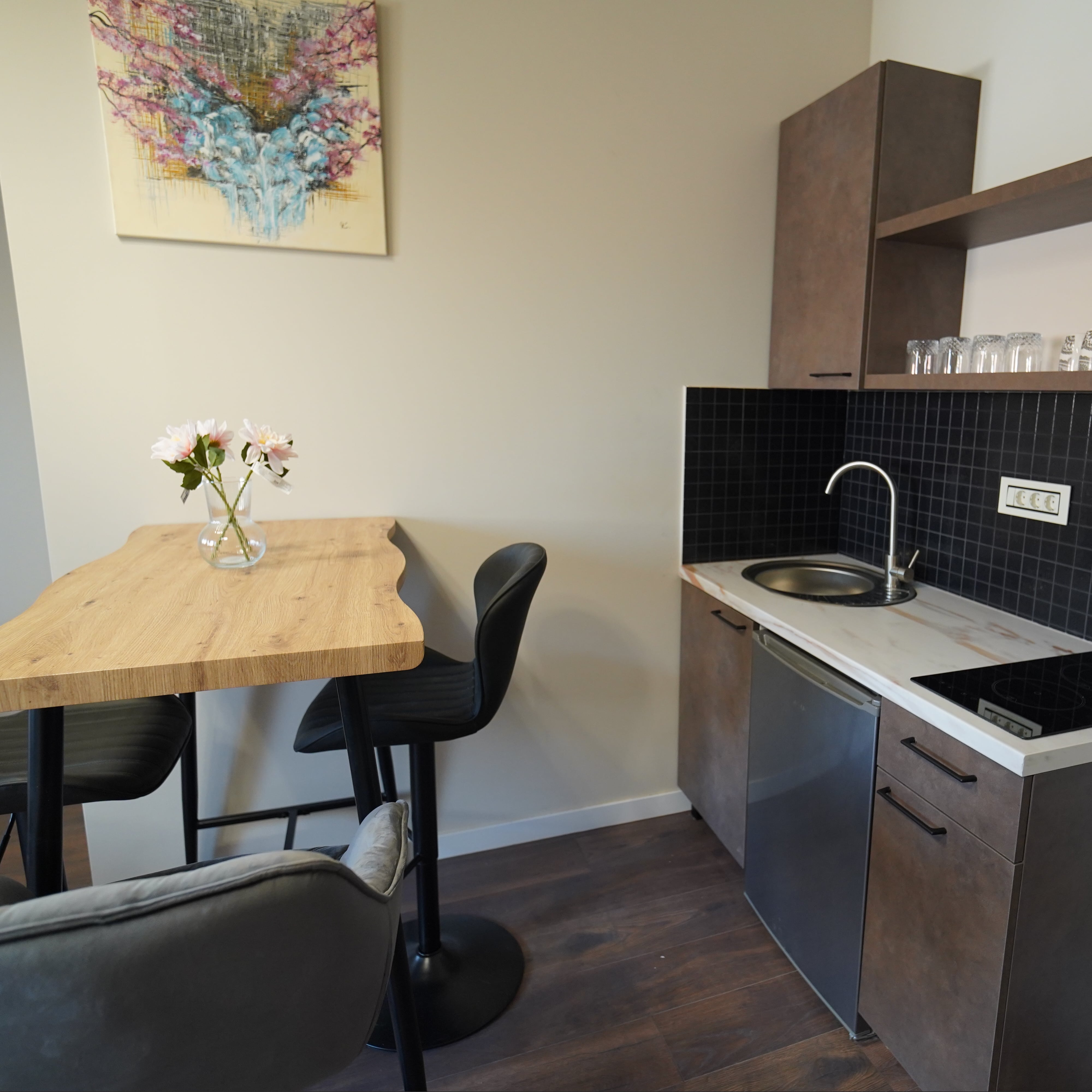 Prostran i topao kutak u srcu Pančeva. Bračni krevet i trosed pružaju udobnost za dvoje ili troje, dok moderna kuhinja i detalji enterijera stvaraju osećaj doma. Ovde se dani pretvaraju u lagani ritam uživanja i mira.